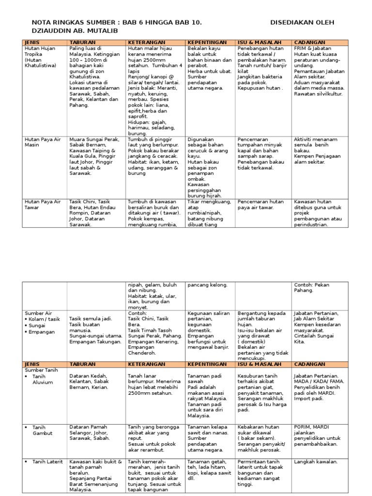 Geografi Tingkatan 3 Nota Ringkas Sumber Bab 6 Hingga 10 Pdf